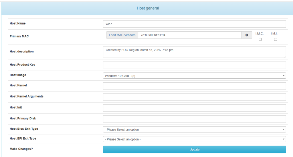 On the Fog Server, click the Hosts Button. Click List Hosts and select the host you just created.