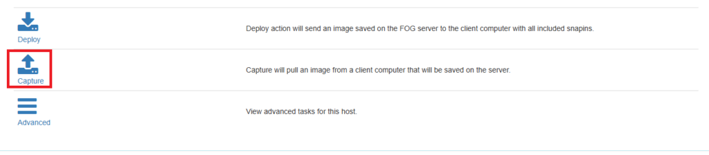 Select the Image You just created and click Update. Go back to your Host and click Tasks.Β Now click Capture.